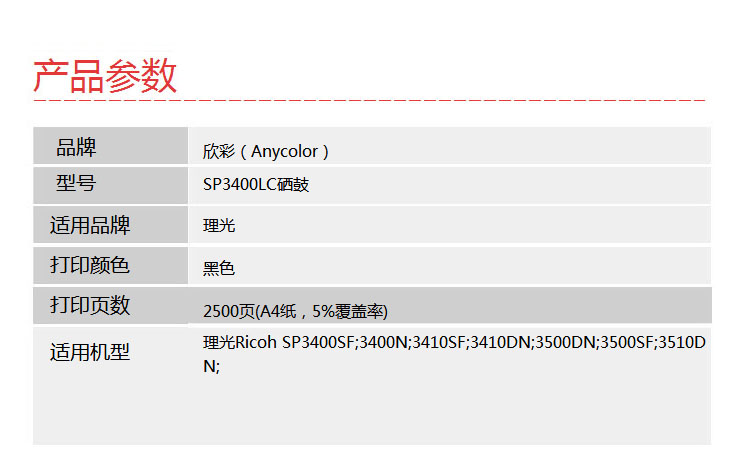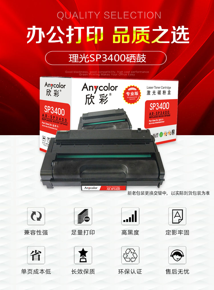 > 办公耗材 复印纸 硒鼓 > 打印耗材 > 硒鼓 > 欣彩(Anycolor)SP3400LC硒鼓(专业版)3400HC 3500XC AR-SP3400适用理光SP3510DN SP3500N SF粉盒| 产品名称 : | 欣彩(Anycolor)SP3400LC硒鼓(专业版)3400HC 3500XC AR-SP3400适用理光SP3510DN SP3500N SF粉盒 |