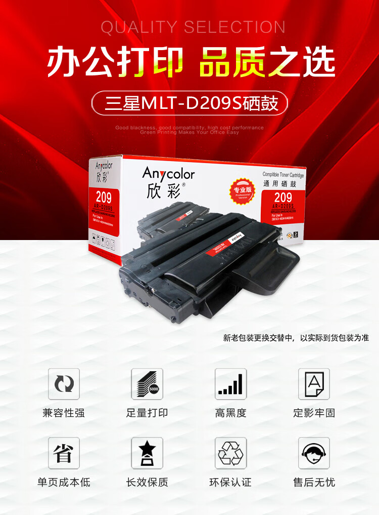 | 产品名称 : | 欣彩 MLT-D209S硒鼓 专业版 AR-D209S 2K 适用三星 SCX-4824HN 4828HN 打印机 |