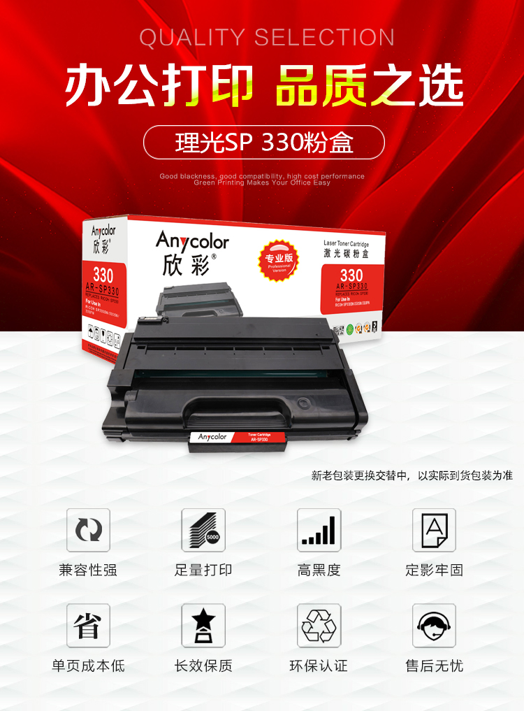 > 办公耗材 复印纸 硒鼓 > 打印耗材 > 硒鼓 > 欣彩(Anycolor)SP 330L型 粉盒(专业版)AR-SP330L/H硒鼓 7K 一体式墨粉盒 适用理光SP 330DN SN 330SFN| 产品名称 : | 欣彩(Anycolor)SP 330L型 粉盒(专业版)AR-SP330L/H硒鼓 7K 一体式墨粉盒 适用理光SP 330DN SN 330SFN |