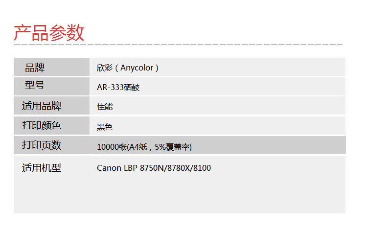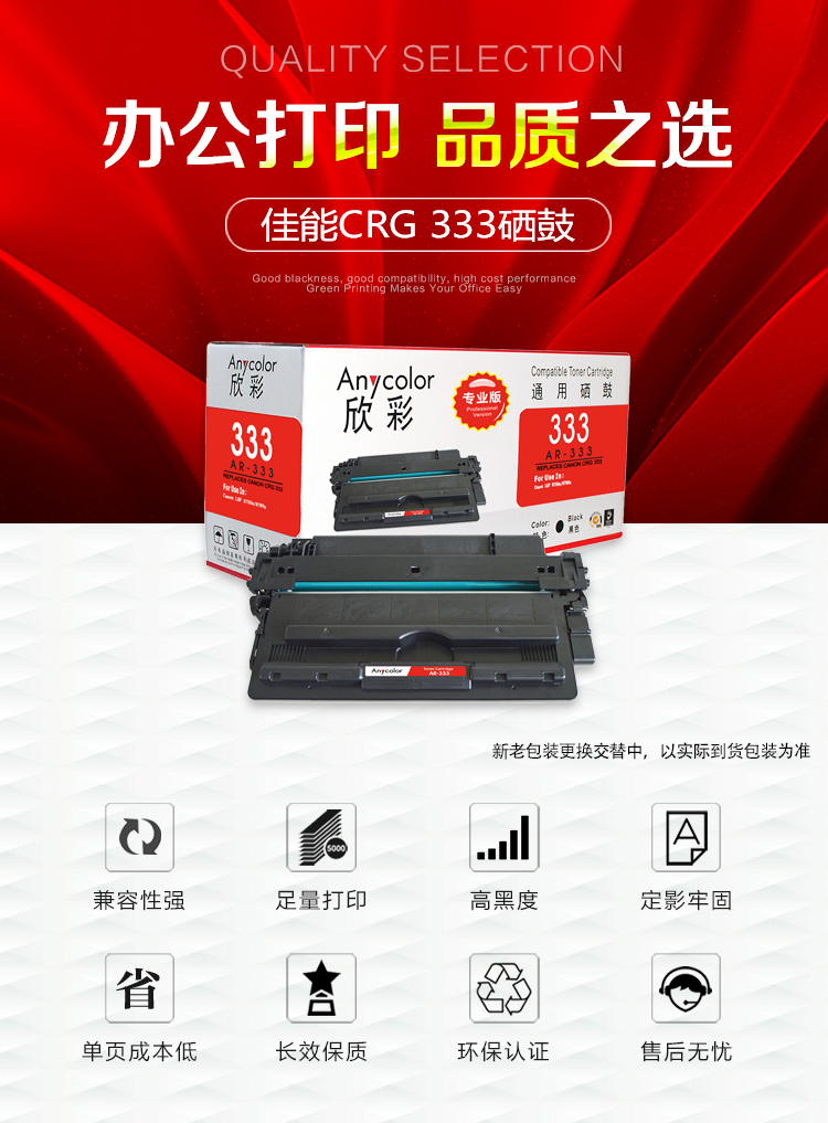 > 办公耗材 复印纸 硒鼓 > 打印耗材 > 硒鼓 > 欣彩(Anycolor)CRG 333硒鼓(专业版)AR-333 适用佳能Canon LBP 8750N 8780X 8100 打印机| 产品名称 : | 欣彩(Anycolor)CRG 333硒鼓(专业版)AR-333 适用佳能Canon LBP 8750N 8780X 8100 打印机 |