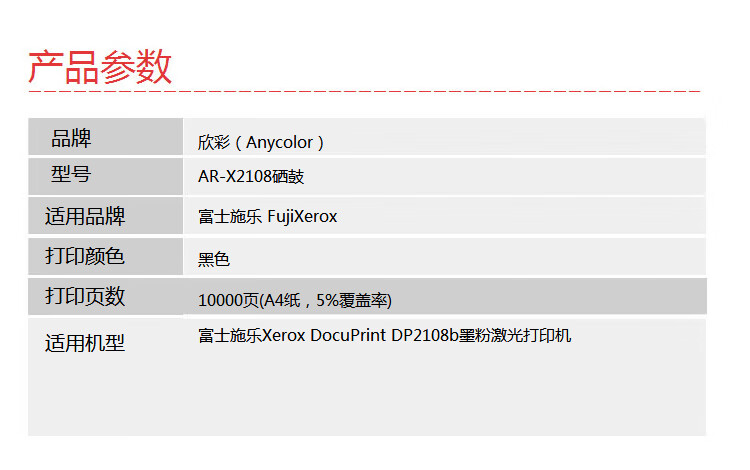 > 办公耗材 复印纸 硒鼓 > 打印耗材 > 硒鼓 > 欣彩(Anycolor)2108b硒鼓(专业版)AR-X2108 适用施乐DocuPrint 2108b CT350999鼓粉组件| 产品名称 : | 欣彩(Anycolor)2108b硒鼓(专业版)AR-X2108 适用施乐DocuPrint 2108b CT350999鼓粉组件 |
