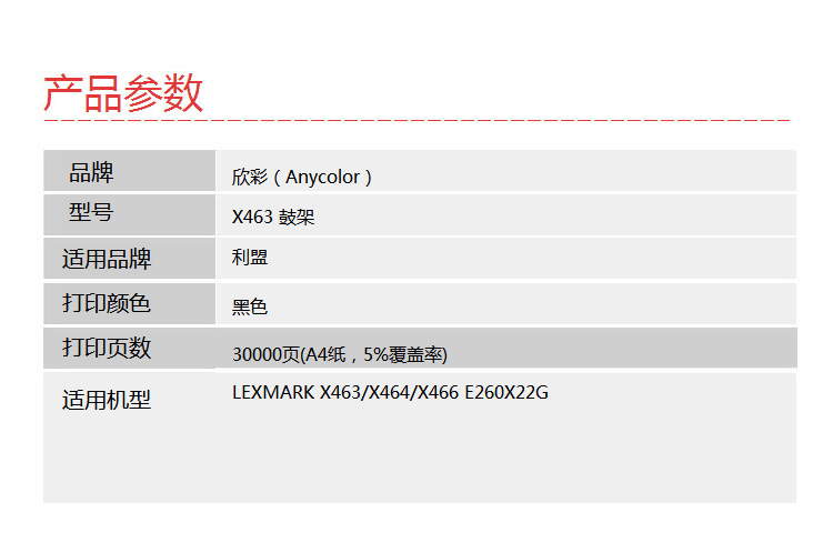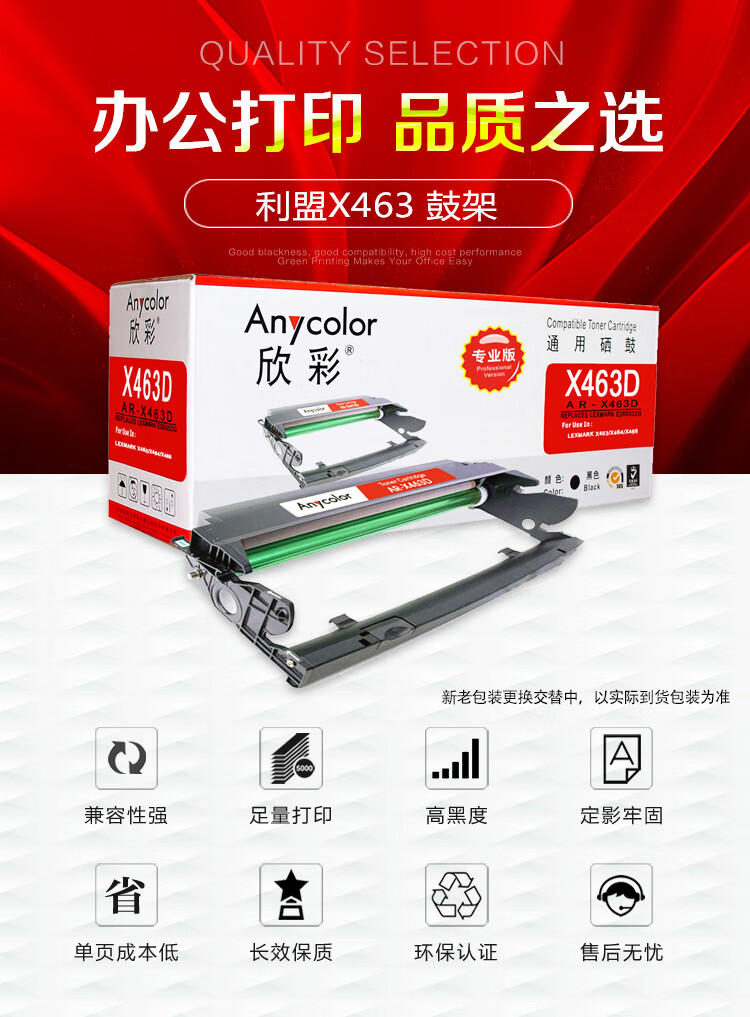 > 办公耗材 复印纸 硒鼓 > 打印耗材 > 硒鼓 > 欣彩(Anycolor)X463 鼓架(专业版)AR-X463D硒鼓 适用利盟LEXMARK X463 X464 X466 X463X21G 打印机| 产品名称 : | 欣彩(Anycolor)X463 鼓架(专业版)AR-X463D硒鼓 适用利盟LEXMARK X463 X464 X466 X463X21G 打印机 |