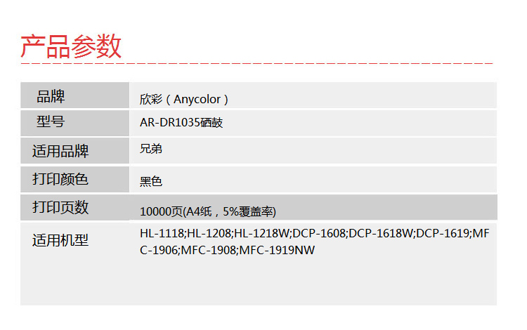 > 办公耗材 复印纸 硒鼓 > 打印耗材 > 硒鼓 > 欣彩(Anycolor)DR1035鼓架(专业版)AR-DR1035适用兄弟HL-1218W DCP-1618W MFC-1819 HL-1118硒鼓组件| 产品名称 : | 欣彩(Anycolor)DR1035鼓架(专业版)AR-DR1035适用兄弟HL-1218W DCP-1618W MFC-1819 HL-1118硒鼓组件 |
