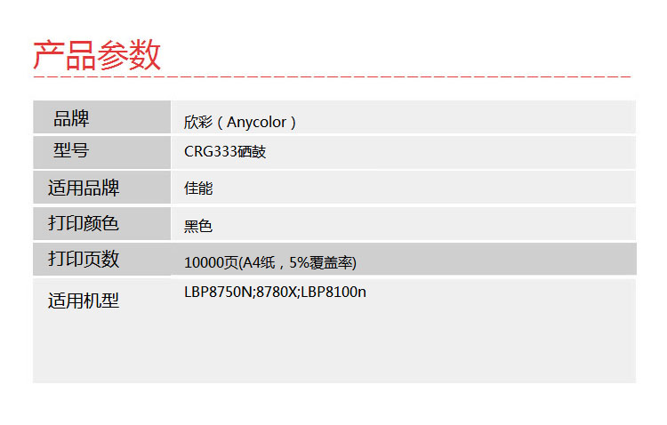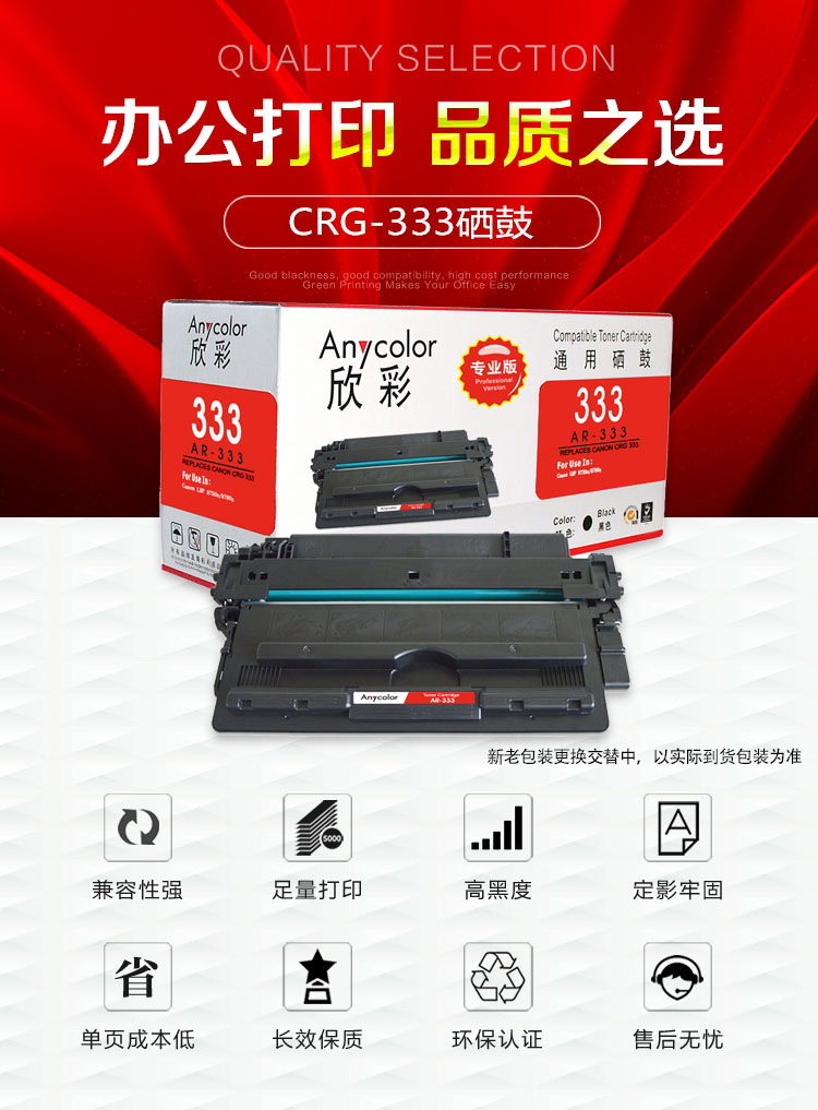 > 办公耗材 复印纸 硒鼓 > 打印耗材 > 硒鼓 > 欣彩(Anycolor)CRG333硒鼓(专业版)AR-333黑色 适用佳能Canon LBP8780x LBP8750n LBP8100n| 产品名称 : | 欣彩(Anycolor)CRG333硒鼓(专业版)AR-333黑色 适用佳能Canon LBP8780x LBP8750n LBP8100n |