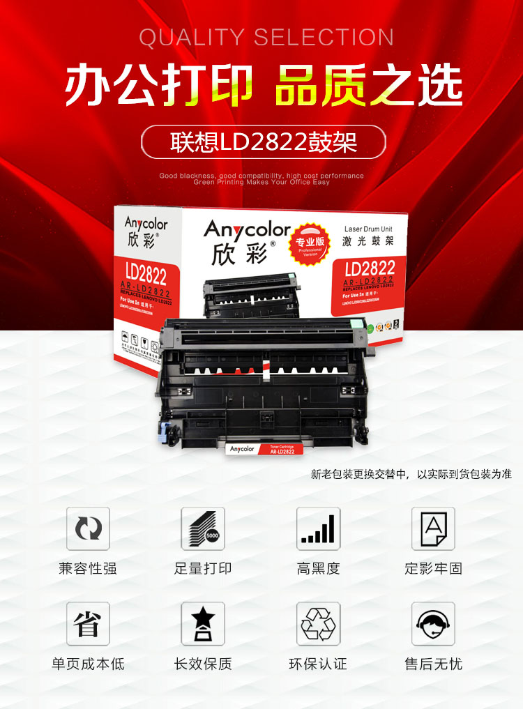 > 办公耗材 复印纸 硒鼓 > 打印耗材 > 硒鼓 > 欣彩(Anycolor)LD2822鼓架(专业版)AR-LD2822硒鼓组件 适用联想LJ2200 2200L 2250 2250N M7205 M7215| 产品名称 : | 欣彩(Anycolor)LD2822鼓架(专业版)AR-LD2822硒鼓组件 适用联想LJ2200 2200L 2250 2250N M7205 M7215 |