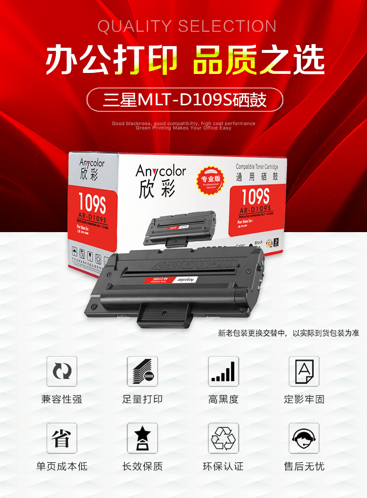> 办公耗材 复印纸 硒鼓 > 打印耗材 > 硒鼓 > 欣彩(Anycolor)MLT-D109S硒鼓(专业版)AR-D109带芯片 适用三星 MLT-D109S SCX-4300 粉盒 打印机| 产品名称 : | 欣彩(Anycolor)MLT-D109S硒鼓(专业版)AR-D109带芯片 适用三星 MLT-D109S SCX-4300 粉盒 打印机 |