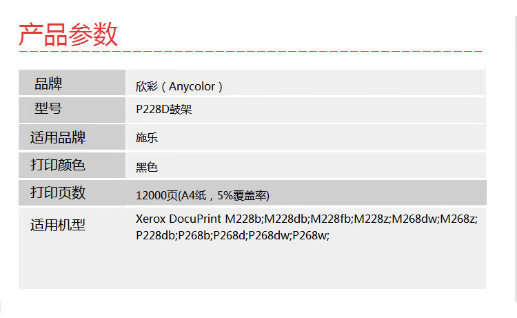 > 办公耗材 复印纸 硒鼓 > 打印耗材 > 硒鼓 > 欣彩(Anycolor)P228D鼓架(专业版)AR-P228D黑色硒鼓组件 适用施乐CT351056 M228b M228db M268dw P268b| 产品名称 : | 欣彩(Anycolor)P228D鼓架(专业版)AR-P228D黑色硒鼓组件 适用施乐CT351056 M228b M228db M268dw P268b |