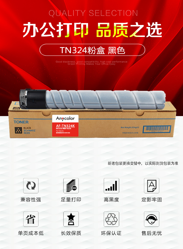 > 办公耗材 复印纸 硒鼓 > 打印耗材 > 硒鼓 > 欣彩(Anycolor) TN324粉盒 AF-TN324K黑色 适用柯尼卡美能达bizhub C454 C308 C258 C368 复印机碳粉| 产品名称 : | 欣彩(Anycolor) TN324粉盒 AF-TN324K黑色 适用柯尼卡美能达bizhub C454 C308 C258 C368 复印机碳粉 |