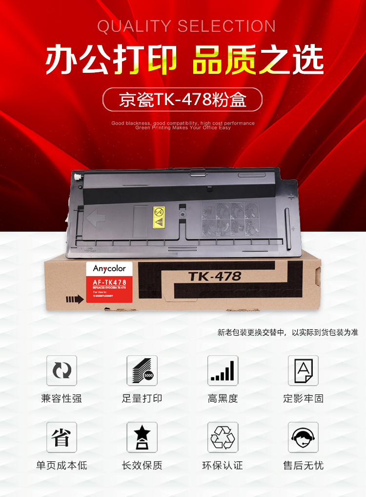 | 产品名称 : | 欣彩(Anycolor)TK-478粉盒 AF-TK478 适用京瓷FS 6025MFP 6030MFP 复印机粉筒 |