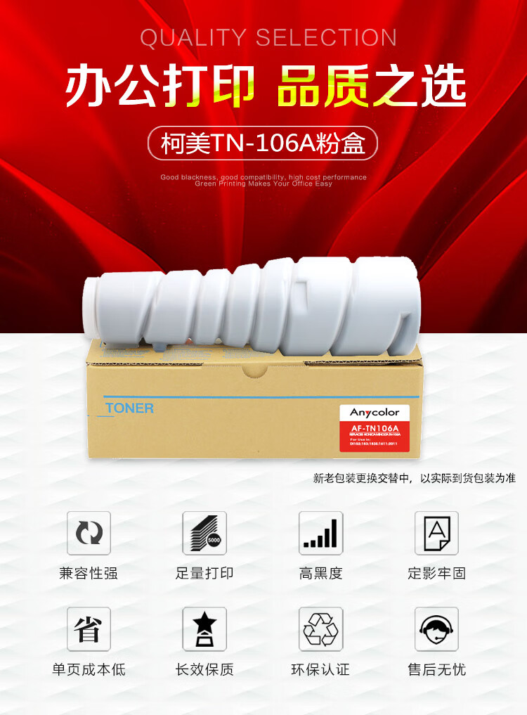 > 办公耗材 复印纸 硒鼓 > 打印耗材 > 硒鼓 > 欣彩(Anycolor) 粉盒 AF-TN106A 适用柯尼卡美能达Di152 183 183s 1611 2011 复印机墨粉筒| 产品名称 : | 欣彩(Anycolor) 粉盒 AF-TN106A 适用柯尼卡美能达Di152 183 183s 1611 2011 复印机墨粉筒 |