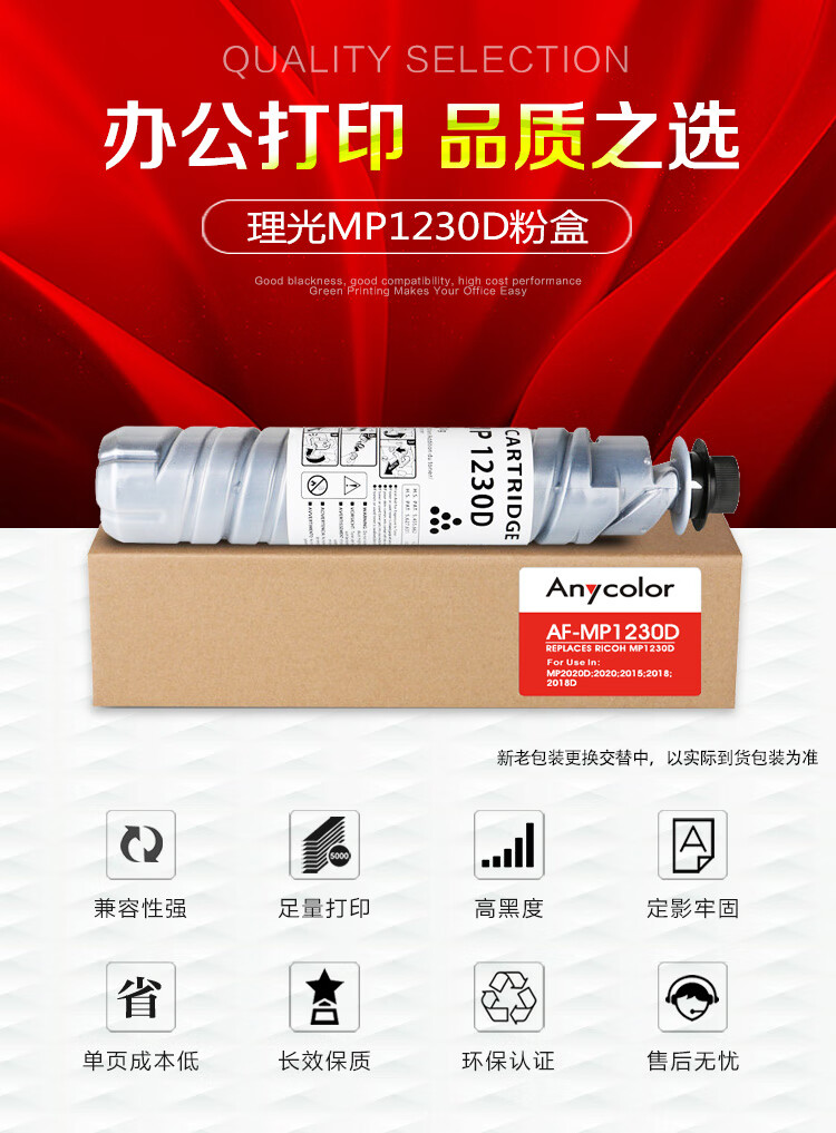 > 办公耗材 复印纸 硒鼓 > 打印耗材 > 硒鼓 > 欣彩(Anycolor)MP1230D粉盒 AF-MP1230D 适用理光 MP2020D 2020 2015 2018 2018D 复印机墨粉筒| 产品名称 : | 欣彩(Anycolor)MP1230D粉盒 AF-MP1230D 适用理光 MP2020D 2020 2015 2018 2018D 复印机墨粉筒 |