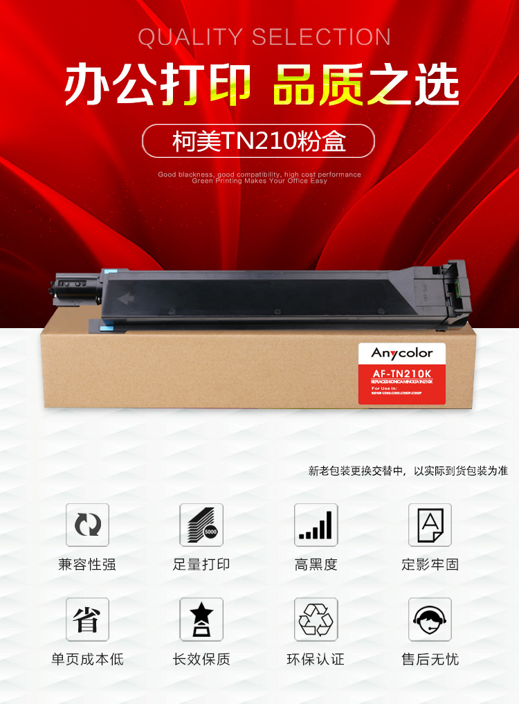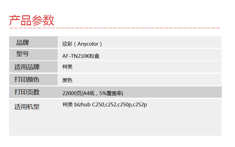 > 办公耗材 复印纸 硒鼓 > 打印耗材 > 硒鼓 > 欣彩(Anycolor) TN210粉盒 AF-TN210K黑色 适用柯尼卡美能达bizhub C250 c252 c250p c252p复印机墨粉筒| 产品名称 : | 欣彩(Anycolor) TN210粉盒 AF-TN210K黑色 适用柯尼卡美能达bizhub C250 c252 c250p c252p复印机墨粉筒 |