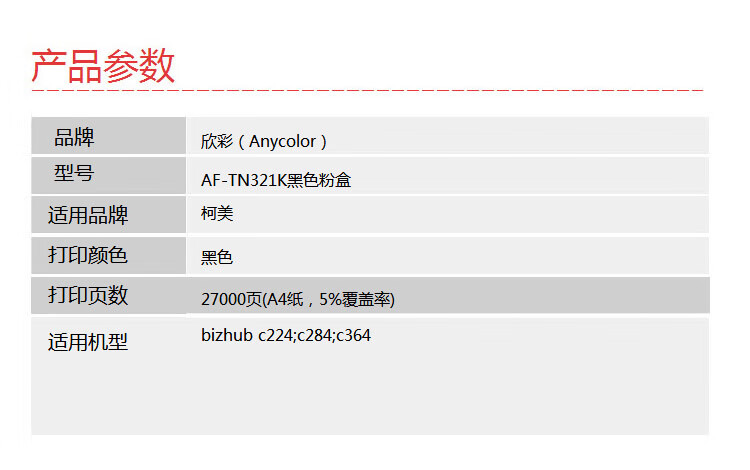 > 办公耗材 复印纸 硒鼓 > 打印耗材 > 硒鼓 > 欣彩 美能达TN321/TN220/TN221粉盒黑色 专业版 AF-TN321K 适用柯美C364;C284;C224;C7822;C7828;C221 C281| 产品名称 : | 欣彩 美能达TN321/TN220/TN221粉盒黑色 专业版 AF-TN321K 适用柯美C364;C284;C224;C7822;C7828;C221 C281 |