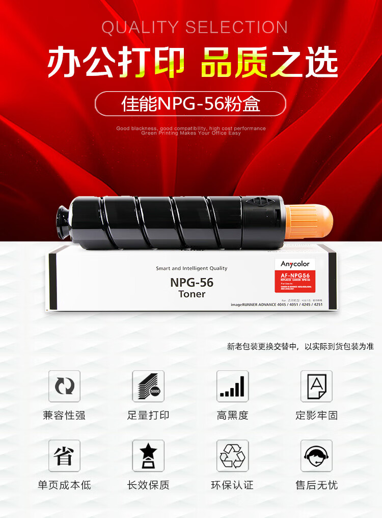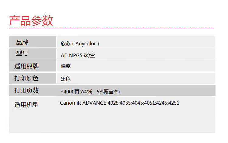> 办公耗材 复印纸 硒鼓 > 打印耗材 > 硒鼓 > 欣彩(Anycolor)NPG-56墨粉盒 AF-NPG56 适用佳能Canon iR ADVANCE 4025 4035 4045 4051 4245 4251复印机| 产品名称 : | 欣彩(Anycolor)NPG-56墨粉盒 AF-NPG56 适用佳能Canon iR ADVANCE 4025 4035 4045 4051 4245 4251复印机 |