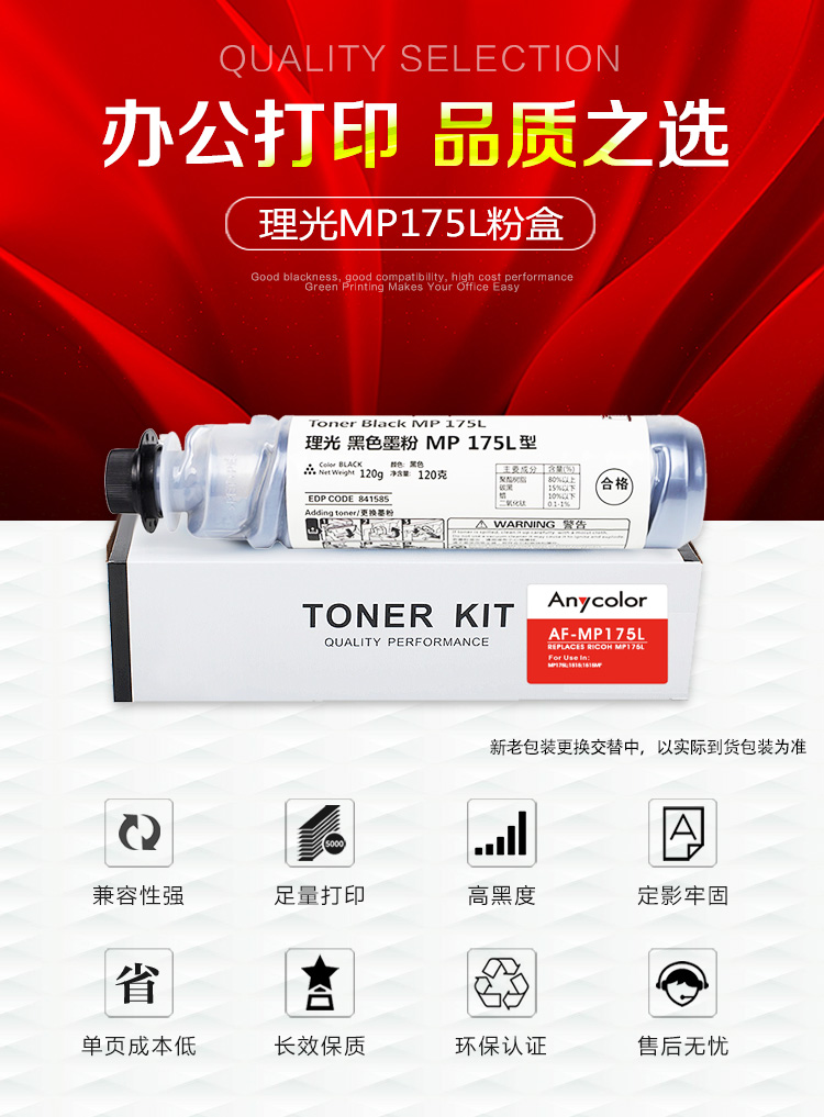 > 办公耗材 复印纸 硒鼓 > 打印耗材 > 硒鼓 > 欣彩(Anycolor) MP175L粉盒 AF-MP175L墨粉盒 适用理光 MP175L 1515 1515MF 复印机墨粉筒| 产品名称 : | 欣彩(Anycolor) MP175L粉盒 AF-MP175L墨粉盒 适用理光 MP175L 1515 1515MF 复印机墨粉筒 |