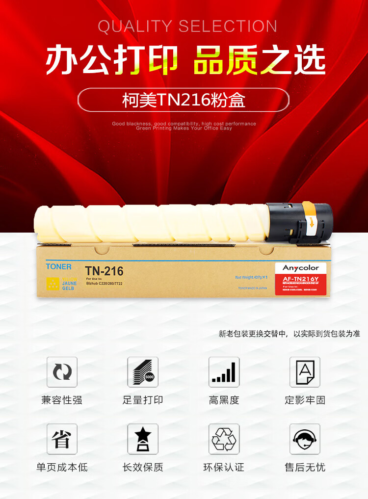 > 办公耗材 复印纸 硒鼓 > 打印耗材 > 硒鼓 > 欣彩(Anycolor)TN216墨粉盒 AF-TN216Y黄色 适用柯尼卡美能达bizhub C220 C280 bizhub C360 碳粉盒| 产品名称 : | 欣彩(Anycolor)TN216墨粉盒 AF-TN216Y黄色 适用柯尼卡美能达bizhub C220 C280 bizhub C360 碳粉盒 |