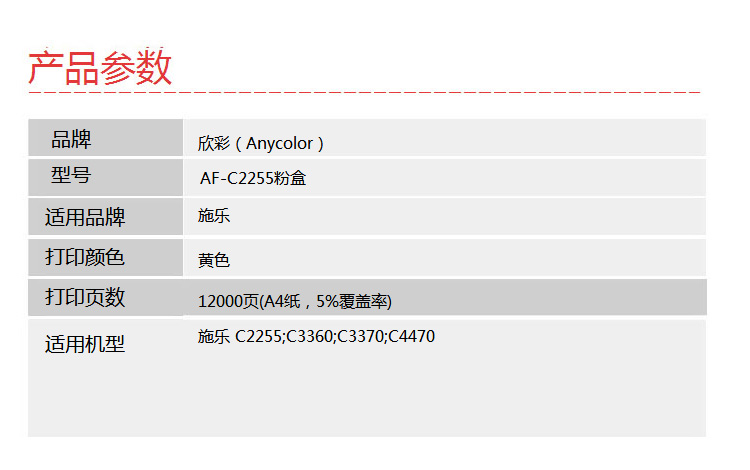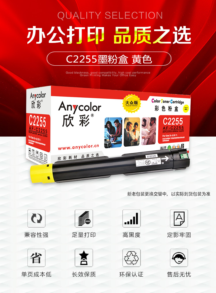 > 办公耗材 复印纸 硒鼓 > 打印耗材 > 硒鼓 > 欣彩(Anycolor)C2255黄色墨粉筒 大众版 AF-C2255粉盒 适用施乐 C2255 C3360 C3370 C4470| 产品名称 : | 欣彩(Anycolor)C2255黄色墨粉筒 大众版 AF-C2255粉盒 适用施乐 C2255 C3360 C3370 C4470 |