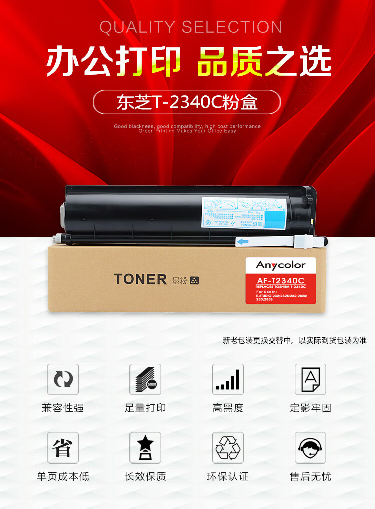 > 办公耗材 复印纸 硒鼓 > 打印耗材 > 硒鼓 > 欣彩(Anycolor)T-2340C墨粉盒 AF-T2340C 24K适用东芝E-STUDIO 232 232S 282 282S 283 283S 复印机碳粉| 产品名称 : | 欣彩(Anycolor)T-2340C墨粉盒 AF-T2340C 24K适用东芝E-STUDIO 232 232S 282 282S 283 283S 复印机碳粉 |