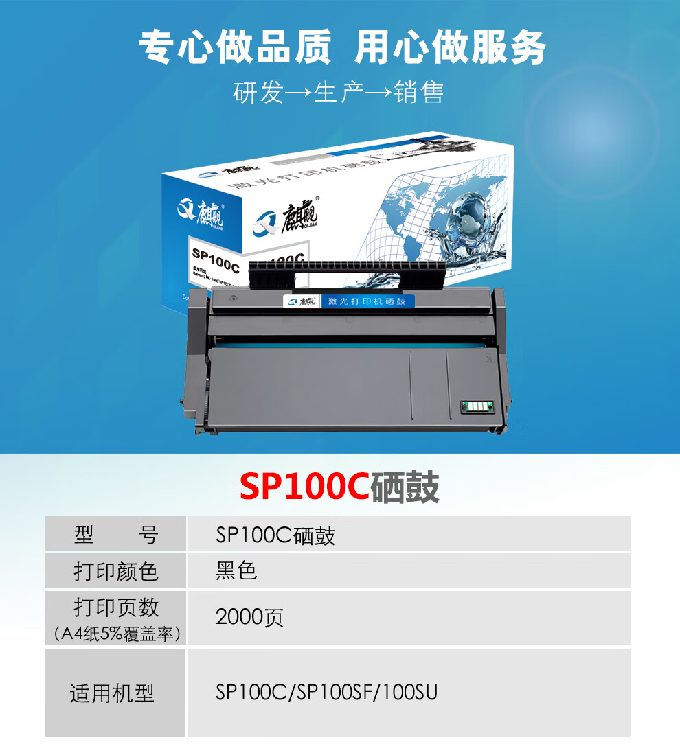 | 产品名称 : | 麒舰 SP100C硒鼓 适用理光SP100硒鼓 SP100 理光SP100C硒鼓 100SF 100SU硒鼓打印机墨盒 |