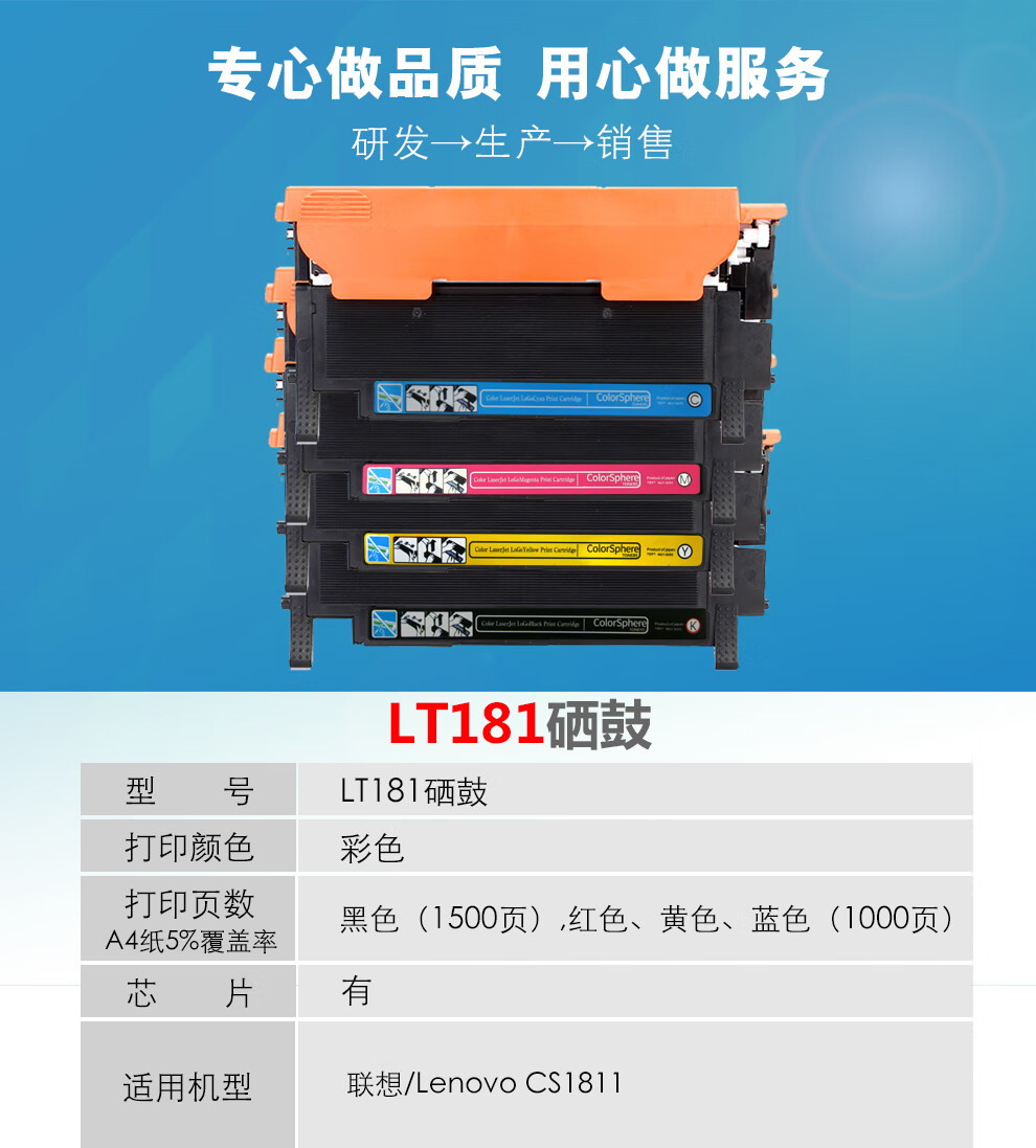 | 产品名称 : | 麒舰 LT181Y 黄色硒鼓 适用联想 Lenovo CS1811粉盒LT181硒鼓CS1811打印机墨盒1811墨粉盒 |