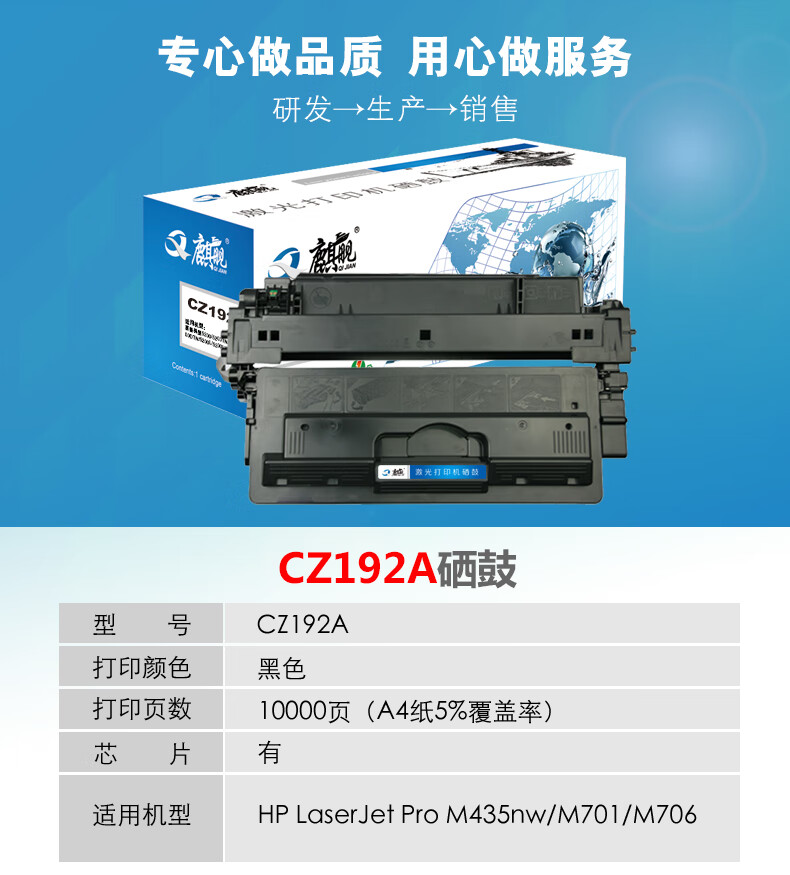 | 产品名称 : | 麒舰 CZ192A 硒鼓适用惠普HPLaserJet M435nw M701 M701n M706 |