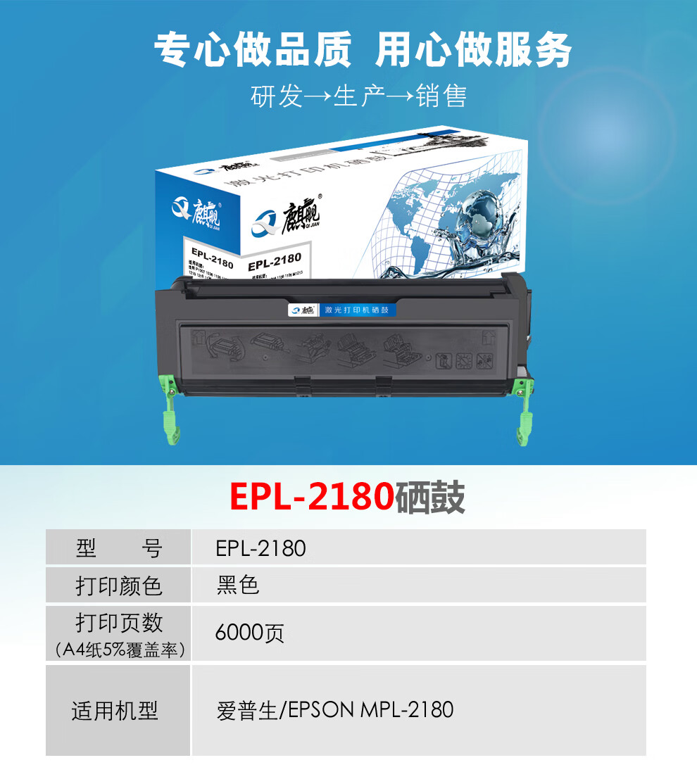 | 产品名称 : | 麒舰 EPL-2180硒鼓 适用爱普生 EPSON S051119 EPL-2180墨盒 加黑型粉盒 |