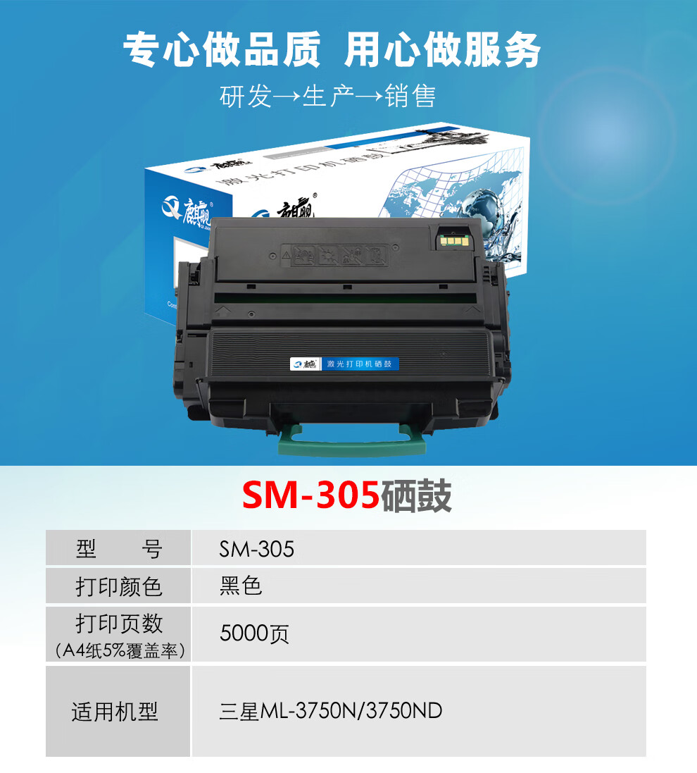 | 产品名称 : | 麒舰 SM-305 硒鼓 适用三星 ML-3750ND 3750N 3753ND 打印机硒鼓 |