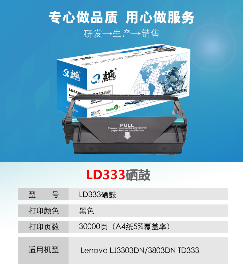 | 产品名称 : | 麒舰 LD333硒鼓 适用联想 LJ3303DN打印机硒鼓 LJ3803DN LD333鼓架 |