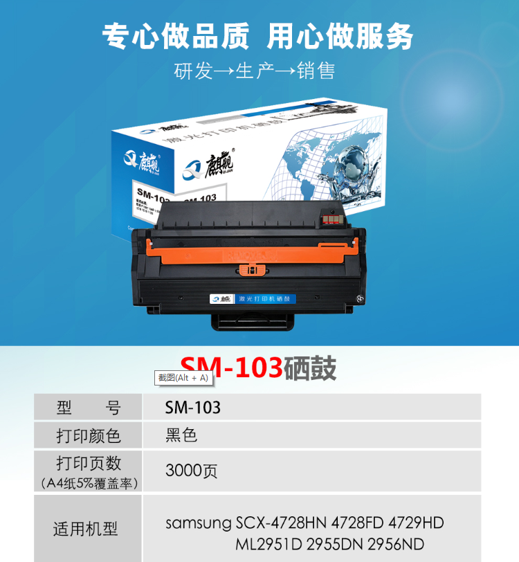 > 办公耗材 复印纸 硒鼓 > 打印耗材 > 硒鼓 > 麒舰 SM-103 硒鼓 适用三星 SCX-4728HN 4728FD 4729HD ML2951D 2955DN 2956ND 打印机硒鼓| 产品名称 : | 麒舰 SM-103 硒鼓 适用三星 SCX-4728HN 4728FD 4729HD ML2951D 2955DN 2956ND 打印机硒鼓 |
