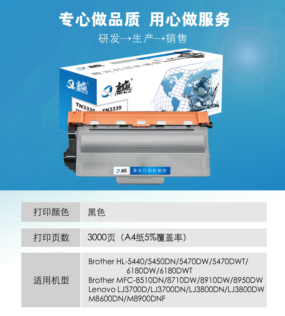 > 办公耗材 复印纸 硒鼓 > 打印耗材 > 硒鼓 > 麒舰 TN3335粉盒 适用兄弟HL-5440D 5445D 5450DN 6180DW MFC-8510DN 8515DN 8520DN 打印机硒鼓粉盒| 产品名称 : | 麒舰 TN3335粉盒 适用兄弟HL-5440D 5445D 5450DN 6180DW MFC-8510DN 8515DN 8520DN 打印机硒鼓粉盒 |