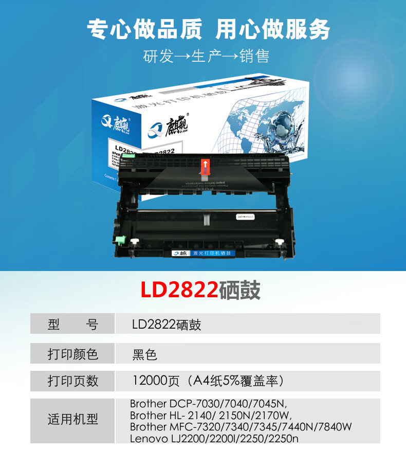 | 产品名称 : | 麒舰 LD2822硒鼓 适用联想 LJ2200L LJ2250 LJ2250N M7205 M7215 粉盒 |