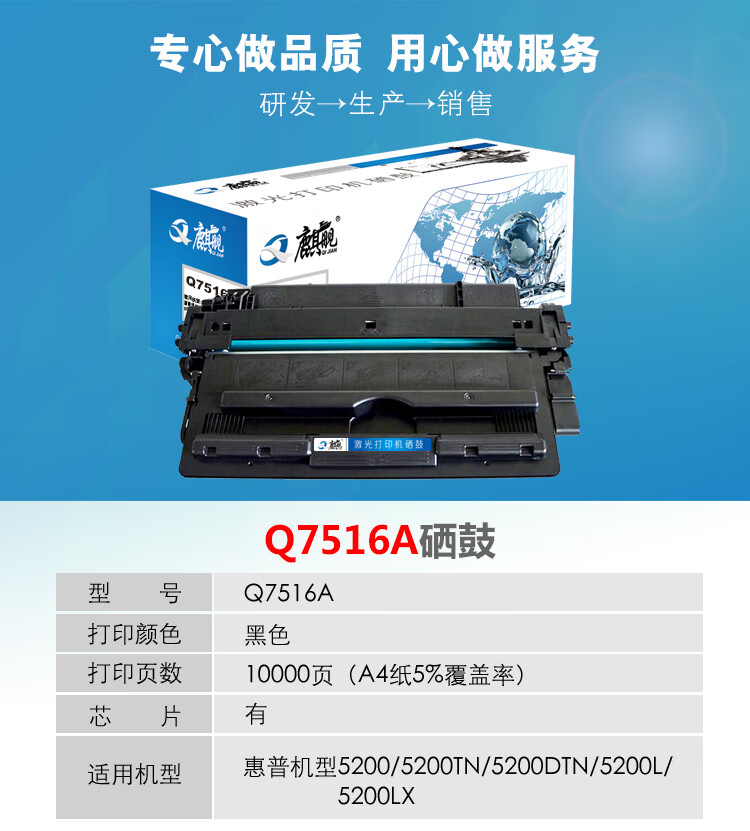 | 产品名称 : | 麒舰 Q7516A 适用惠普机型5200/5200TN/5200DTN/5200L/5200LX硒鼓 |