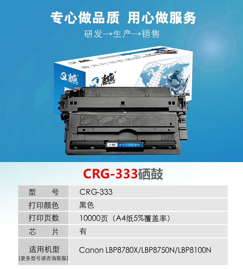 | 产品名称 : | 麒舰 CRG333 硒鼓 适用于佳能 LBP8750N/LBP8780X/8780X/LBP8100n 打印机硒鼓 |