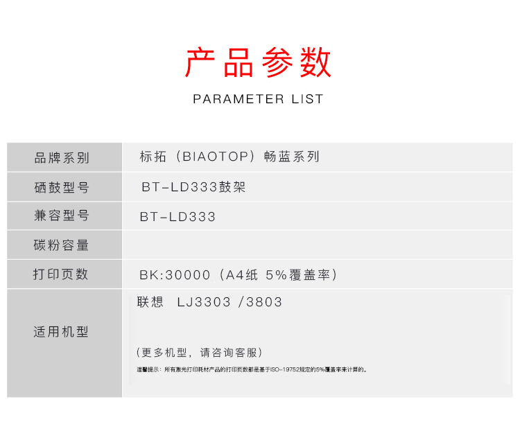 | 产品名称 : | 标拓 (Biaotop) LD333硒鼓架适用联想LJ3303/3803打印机 畅蓝系列 |