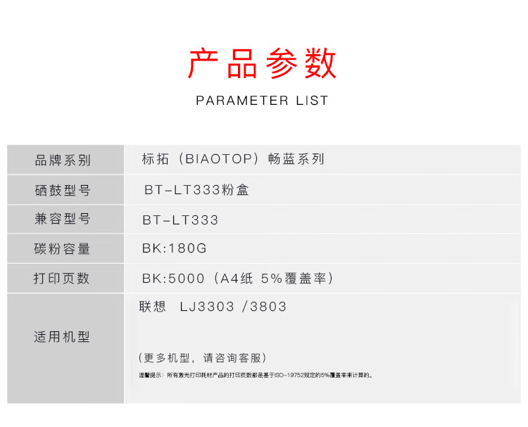 | 产品名称 : | 标拓 (Biaotop) LT333粉盒适用联想LJ3303 /3803打印机 畅蓝系列 |