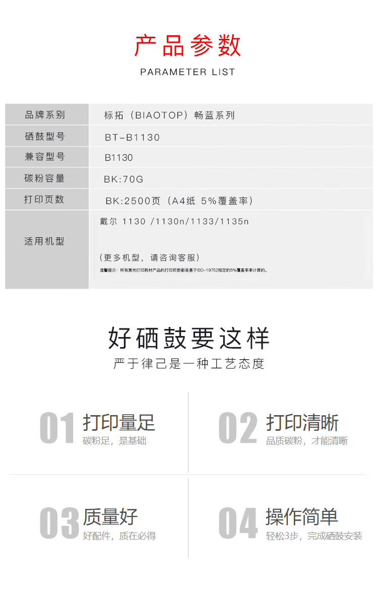 | 产品名称 : | 标拓 (Biaotop) B1130硒鼓适用戴尔DELL 1130 /1130n/1133/1135n打印机 畅蓝系列 |