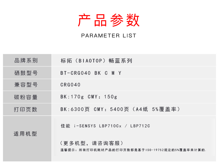 > 办公耗材 复印纸 硒鼓 > 打印耗材 > 硒鼓 > 标拓 (Biaotop) CRG040红色硒鼓适用佳能i-SENSYS LBP710Cx / LBP712Cx打印机 畅蓝系列| 产品名称 : | 标拓 (Biaotop) CRG040红色硒鼓适用佳能i-SENSYS LBP710Cx / LBP712Cx打印机 畅蓝系列 |