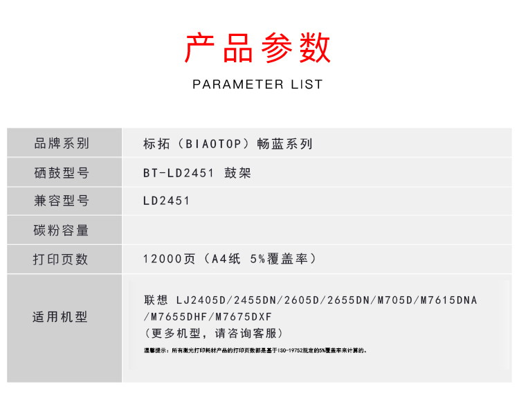 > 办公耗材 复印纸 硒鼓 > 打印耗材 > 硒鼓 > 标拓 (Biaotop) LD2451硒鼓鼓架适用联想LJ2405D/LJ2455D/LJ2605D/LJ2655DN/M7605D/M7615打印机 畅蓝系列| 产品名称 : | 标拓 (Biaotop) LD2451硒鼓鼓架适用联想LJ2405D/LJ2455D/LJ2605D/LJ2655DN/M7605D/M7615打印机 畅蓝系列 |