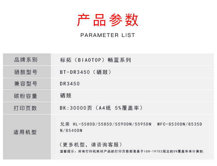 > 办公耗材 复印纸 硒鼓 > 打印耗材 > 硒鼓 > 标拓 (Biaotop) DR3450硒鼓架适用兄弟HL-5580D 5585D 5590DN/5595/8530/8535/8540DN打印机 畅蓝系列| 产品名称 : | 标拓 (Biaotop) DR3450硒鼓架适用兄弟HL-5580D 5585D 5590DN/5595/8530/8535/8540DN打印机 畅蓝系列 |