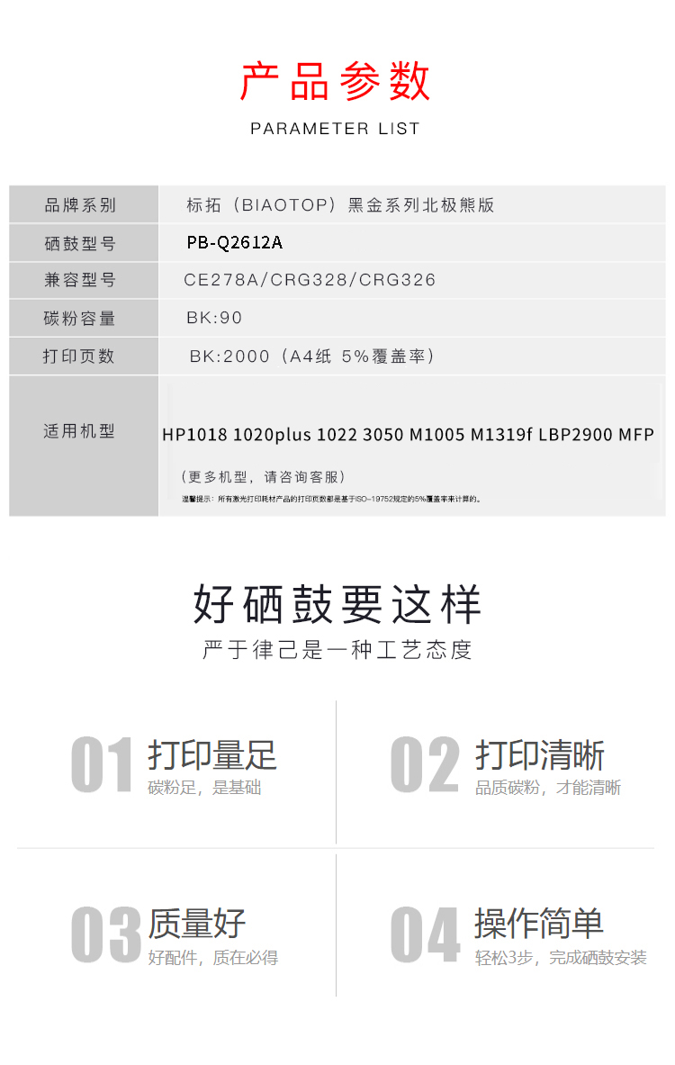 > 办公耗材 复印纸 硒鼓 > 打印耗材 > 硒鼓 > 标拓 (Biaotop) 蓝包Q2612A硒鼓 适用惠普HP1018/1020plus/1022/3050/M1005/M1319f/LBP2900 打印机 畅蓝系列| 产品名称 : | 标拓 (Biaotop) 蓝包Q2612A硒鼓 适用惠普HP1018/1020plus/1022/3050/M1005/M1319f/LBP2900 打印机 畅蓝系列 |