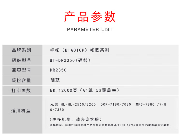 > 办公耗材 复印纸 硒鼓 > 打印耗材 > 硒鼓 > 标拓 (Biaotop) 蓝包DR2350硒鼓鼓架适用兄弟2260D/7080D/DCP-7180DN/7380/7480D打印机 畅蓝系列| 产品名称 : | 标拓 (Biaotop) 蓝包DR2350硒鼓鼓架适用兄弟2260D/7080D/DCP-7180DN/7380/7480D打印机 畅蓝系列 |