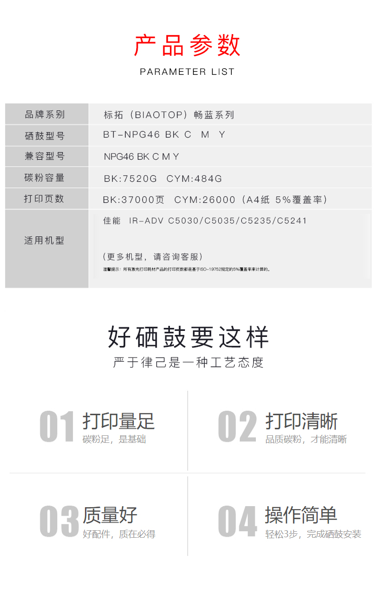 > 办公耗材 复印纸 硒鼓 > 打印耗材 > 硒鼓 > 标拓 (Biaotop) NPG46蓝色粉盒适用佳能iR-ADV C5030/C5035/C5235/C5241复印机 克隆系列| 产品名称 : | 标拓 (Biaotop) NPG46蓝色粉盒适用佳能iR-ADV C5030/C5035/C5235/C5241复印机 克隆系列 |