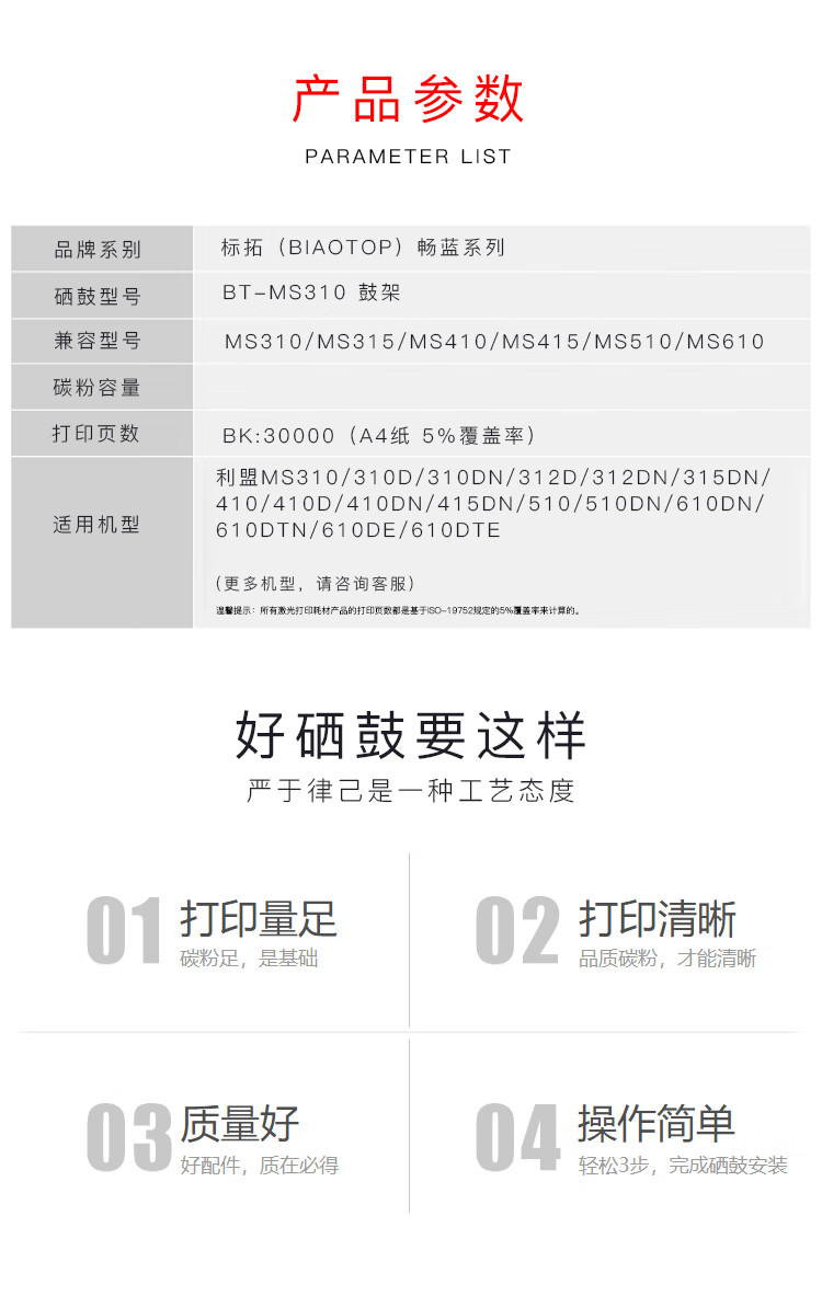 > 办公耗材 复印纸 硒鼓 > 打印耗材 > 硒鼓 > 标拓 (Biaotop) MS310硒鼓架适用利盟MS310/312D/315DN/410/415DN/510/610DN打印机 畅蓝系列| 产品名称 : | 标拓 (Biaotop) MS310硒鼓架适用利盟MS310/312D/315DN/410/415DN/510/610DN打印机 畅蓝系列 |