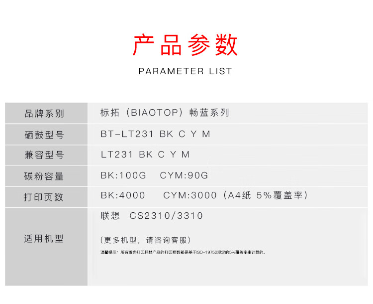 | 产品名称 : | 标拓 (Biaotop) LT231蓝色粉盒适用联想CS2310/3310打印机 克隆系列 |