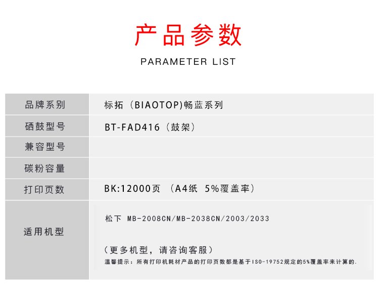 > 办公耗材 复印纸 硒鼓 > 打印耗材 > 硒鼓 > 标拓 (Biaotop) FAD416鼓架适用松下MB-2008CN/MB-2038CN/2003/2033复印机 克隆系列| 产品名称 : | 标拓 (Biaotop) FAD416鼓架适用松下MB-2008CN/MB-2038CN/2003/2033复印机 克隆系列 |