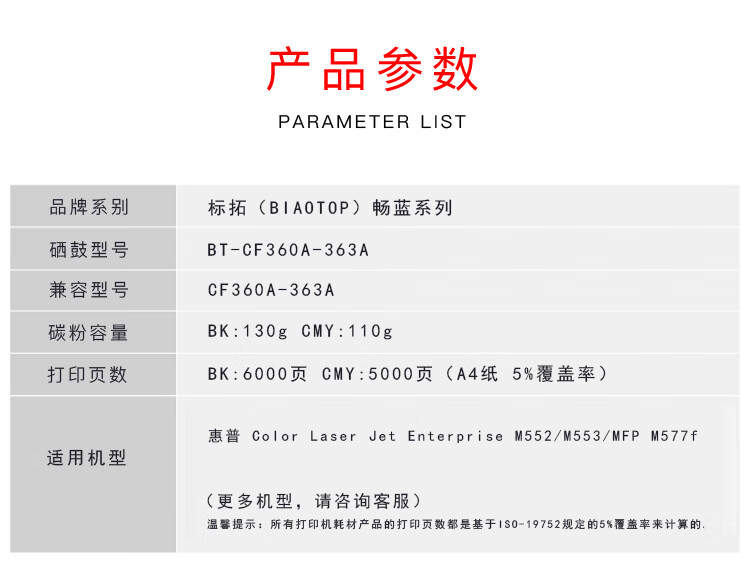 | 产品名称 : | 标拓 (Biaotop) CF361A蓝色硒鼓适应惠普M552/M553/MFP M557f打印机 Pro+MAX系列 |