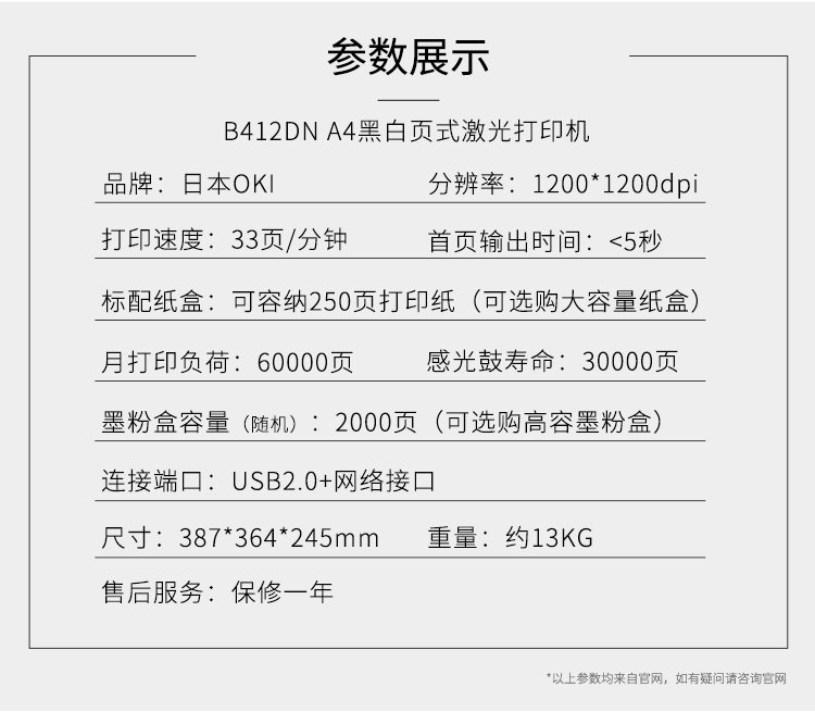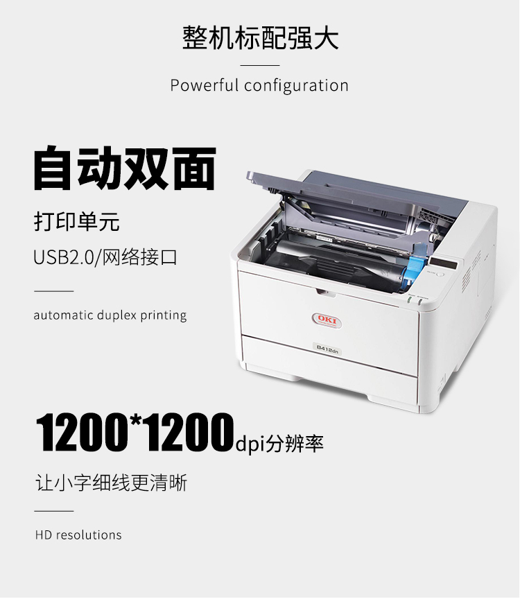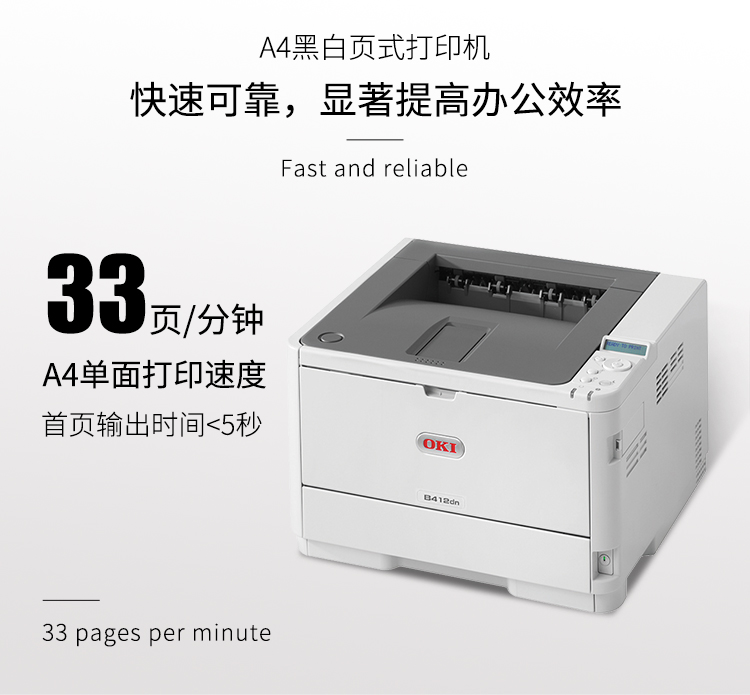 | 产品名称 : | OKI A4黑白激光双面打印机B412DN |