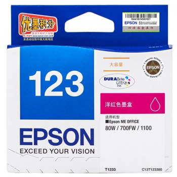 | 产品名称 : | 爱普生(Epson) T1233 大容量洋红色墨盒 C13T123380(适用80W/700FW/1100) |