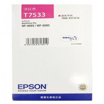| 产品名称 : | 爱普生(EPSON)T7533 洋红色墨盒(适用WF6093/6593/8093/8593) |