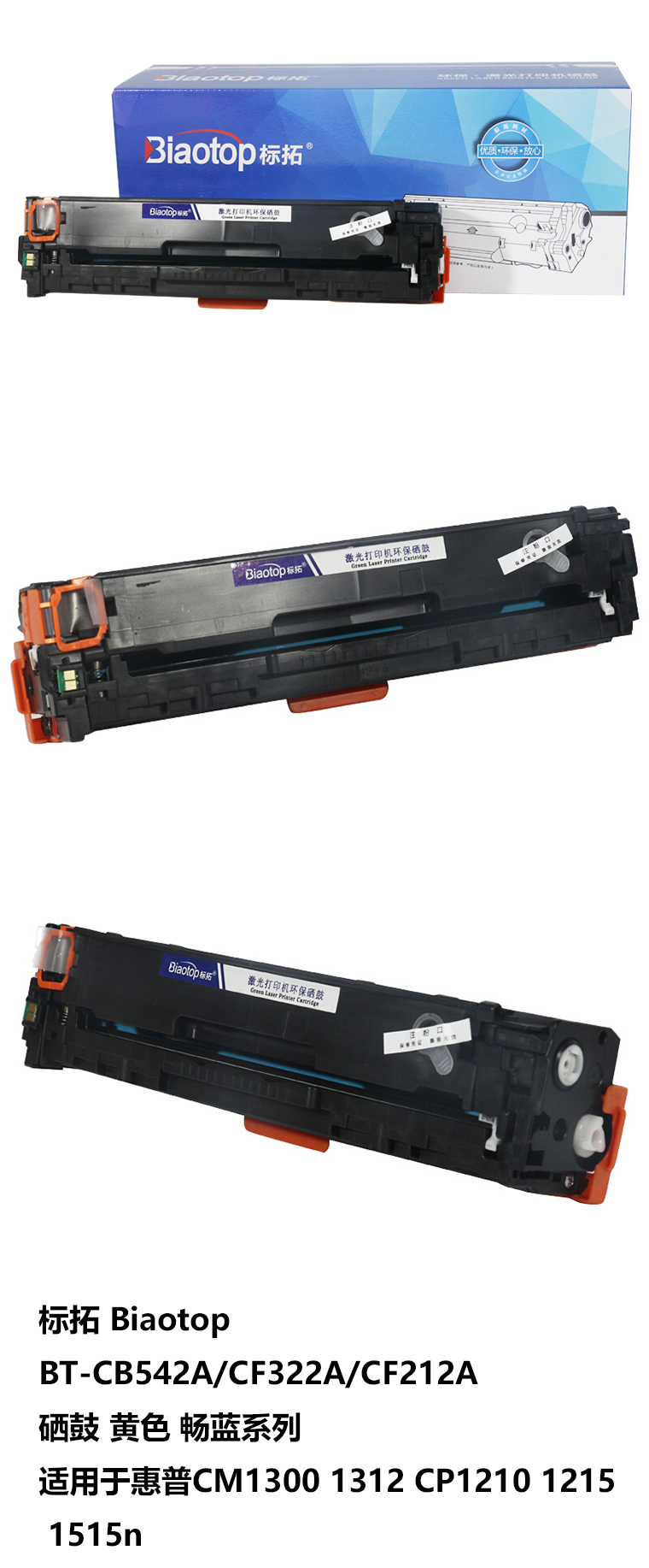 > 办公耗材 复印纸 硒鼓 > 打印耗材 > 硒鼓 > 标拓 Biaotop BT-CB542A/CF322A/CF212A 硒鼓 黄色 畅蓝系列 适用于惠普CM1300 1312 CP1210 1215 1515n 计价单位:支| 产品名称 : | 标拓 Biaotop BT-CB542A/CF322A/CF212A 硒鼓 黄色 畅蓝系列 适用于惠普CM1300 1312 CP1210 1215 1515n 计价单位:支 |